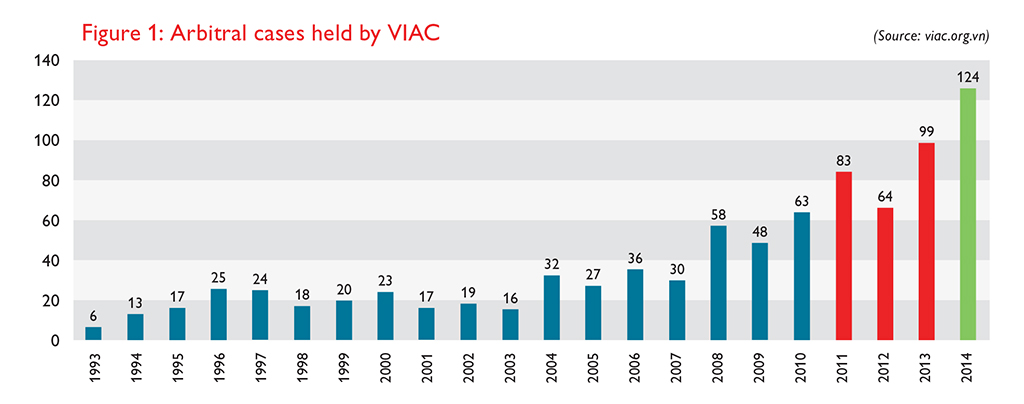 VIAC currently maintains a list of 127 Vietnamese arbitrators and 17 foreign arbitrators, thus supplanting other local arbitration centres. Since its establishment, the VIAC has handled 862 cases (124 cases in 2014 alone), approximately 70% of which involved sales contracts and a foreign party. It is fair to say that the development of VIAC illustrates the rising trend of arbitration in Vietnam.