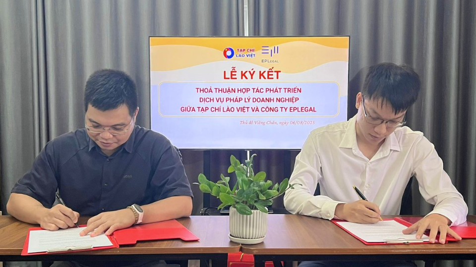 Viêng Chăn, ngày 6/8/2025 – Tạp chí Lào–Việt, trực thuộc Công ty TNHH Mekonglink, và Công ty Luật EPLegal đã chính thức ký kết Thỏa thuận hợp tác chiến lược dài hạn, hướng đến việc phát triển và nâng cao chất lượng dịch vụ pháp lý dành cho doanh nghiệp. Tham gia lễ ký kết, Luật sư Cao Nhật Anh – Luật sư Thành viên, đại diện EPLegal và Tạp chí Lào Việt có ông Trần Văn Minh – Phó Giám đốc Công ty Mekonglink. Sự kiện đánh dấu bước tiến quan trọng trong việc nâng cao chất lượng hỗ trợ pháp lý cho cộng đồng doanh nghiệp tại Việt Nam và Lào.